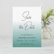 Moderne minimaliste sarcelle bleu vert modèle de calligraphie simple avec votre code QR du site Web de mariage invitations & papeterie & annonces / Enregistrez les dates / Carte Enregistrer la date à plat imprimée.