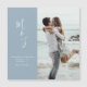 Annoncez votre jour de mariage avec votre photo impressionnante contre un arrière - plan bleu poudreux avec vos initiales dans un script de calligraphie moderne fantaisiste. Idéal Enregistrer la date pour les mariages, fiançailles, anniversaires et autres événements spéciaux.