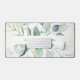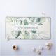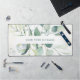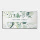 Elégant tapis de bureau de style rustique avec un design simple avec votre nom entre une bordure haut et bas de feuilles d'eucalyptus et de verdure.