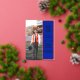 Nos annonces de graduation design moderne orangé et bleu feuille comprennent une mise en page de classe saisissante année et photo verticale. Personnaliser avec nom et école.