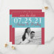 Le texte et la photo de fiançailles sur cette carte moderne "save the date" de mariage avec photo de couleur bleu aqua (turquoise, bleu œuf de robin) et rouge sont entièrement personnalisables. Vous pouvez modifier la plupart du texte et la photo de fiançailles en utilisant l'option de personnalisation. Pour modifier le reste du texte ou pour apporter des modifications plus importantes à la carte, y compris la modification de la police, de la couleur de la police ou du placement du texte, utilisez l'option de personnalisation avancée. Vous pouvez également modifier le type de papier sous les options d'invitation. C'est une belle carte "save the date" pour un mariage avec une palette de couleurs bleu aqua et rouge.