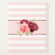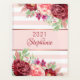 Ce planificateur personnalisé présente un design floral moderne avec des fleurs d'aquarelle bordeaux et rousses et du feuillage sur arrière - plan rayé rose et blanc avec feuille d'or imitation rose. Le dos a un motif floral assorti. Personnalisez le monogramme avec votre nom ou vos initiales et votre année.