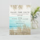 Moderne goldene Palme elegante Strandfotografie mit einfacher Typografie, ein trendiges und tropisches Save-the-Date-Hochzeitsthema .