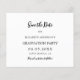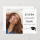 Une photo Enregistrer la carte de date pour une fête de remise de diplômes. Sur le devant : Ajoutez votre propre photo verticale du diplômé. Un arrière - plan blanc chic, du texte noir. Modèles pour un nom et une date. Le nom et le texte : Save the Date sont écrits avec un script de style manuscrit moderne. Avec un casquette, garnir de bon goût. Retour : détails de la fête. 1 feuille = 1 Enregistrer la date d'impression arête à arête.