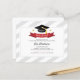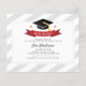 Une carte moderne d'invitation à la remise des diplômes avec une casquette noire à gossel jaune, une bannière rouge et un motif chevron gris et blanc. Customisez facilement cette carte en cliquant sur le bouton "Personnaliser". Nous avons des accessoires assortis et d'autres cartes de graduation disponibles dans notre magasin