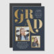 Une invitation à la graduation photo moderne et un aimant faire-part avec un revêtement métallique audacieux et deux photos design.