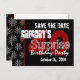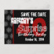 Voici une carte postale tendance d'invitation dans les tons noir et blanc avec des accents de rouge pour une fête surprise pour les 40 ans. Amusant ! Tout le texte est personnalisable.
