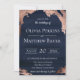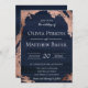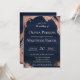 Feuilles de cuivre imitation tendance moderne et élégant avec faire-part de mariage arrière - plan moody minuit bleu aquarelle. Personnaliser texte, style de police, couleur et taille.