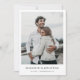 Ce mariage photo moderne simple et élégant sauvegarde la carte date modèle caractéristiques vos noms, date et paramètres régionaux mariages sous votre photo. Vous pouvez choisir de modifier la police, la ponctuation ou la couleur utilisée pour divers éléments de texte de cette conception sur l'avant et/ou l'arrière. C'est entièrement modifiable ! Par exemple, vous pouvez choisir de donner une couleur différente au texte de votre nom, ou de supprimer quelque chose ou de modifier un champ de texte entièrement avec un message différent. La couleur par défaut du texte des deux côtés est noire. Au verso, nous avons choisi un ordre atypique pour l'information, en plaçant le texte "ENREGISTRER LA DATE" après le texte "POUR LE MARIAGE DE", qui lui donne un chemin moins de charme voyagé. Vous pouvez modifier cela en modifiant le texte de chacun de ces champs de texte et en entrant manuellement la pièce que vous voulez placer dans l'ordre dans lequel vous voulez l'afficher. Nous avons placé l'arrière - plan sur le dos comme transparent pour laisser la couleur du papier simplement servir de tonalité de base. Vous pouvez facilement changer cela en choisissant l'une des couleurs de base dans les outils d'édition, en entrant un numéro de couleur si vous avez une teinte spécifique à l'esprit que vous avez trouvée dans votre recherche, ou en regardant l'outil de spectre de couleurs et en choisissant quelque chose par la vue. Nous avons fait matte le choix de papier par défaut, mais vous pouvez changer cela en -semi-brillant si vous préférez ce look. Nous espérons que vous aimerez expérimenter avec ce design propre et contemporain, enregistrer le design modèle date et le rendre unique avec les outils de design intuitif, votre photo préférée et votre inspiration. Nous avons une sélection d'autres minimalistes modernes enregistrer les cartes de date dans différents formats, y compris une version carte postale de ce design, alors s'il vous plaît jeter un oeil!