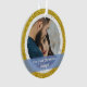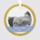 Splashy mais élégant Notre premier Noël Engagé photo personnalisée ornement de Noël pour les couples récemment engagés, avec typographie moderne cursive / lettrage à la main sur une bande élégante semi-transparente bleue, un cadre de flocons de neige blanc et argent et de petites étoiles, et un autre cadre de parties scintillant dorée simulée. Assurez-vous de personnaliser au moins les deux photos (avant et arrière), les prénoms et l'année au dos.