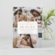 Cette carte "save the date" élégante présente un design moderne et romantique, parfait pour annoncer votre jour spécial. La carte est divisée en quatre emplacements pour photos, vous permettant de mettre en valeur vos 3 photos de fiançailles préférées ou moments de couple dans un format de collage. La zone de texte centrale est encadrée avec élégance et met en évidence les détails essentiels de la date de votre mariage dans une police chic et contemporaine. Les accents dorés doux ajoutent une touche de luxe, tandis que le fond blanc garde l'apparence générale propre et sophistiquée. Idéale pour les couples qui souhaitent partager leur histoire d'amour avec une touche personnelle, cette carte est à la fois belle et mémorable, donnant le ton parfait pour votre mariage à venir.