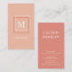 Moderne Pastel Coral Monogram Carte de visite