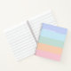 Ce carnet élégant et moderne présente des rayures arc-en-ciel pastel en perwinkle, aqua, vert menthe, pêche au corail et rose. Un modèle de texte est inclus pour une personnalisation facile, et le dos contient un motif de bandes correspondant. Super pour le retour à l'école !