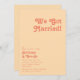 Cette annonce de fuite moderne rétro à la crème orange est parfaite pour votre évasion estivale simple et vintage, colorée et tropicale bohème. Sa police unique de style bohème du milieu du siècle donne à ce design une ambiance hippie groovy minimaliste classique. Si vous cherchez un design qui présente des couleurs vives et audacieuses pour votre mariage créatif des années 70 sur la plage, alors ce produit, et sa collection de mariage coordonnée, sont précisément ce que vous recherchez. N'hésitez pas à changer la couleur et à ajouter vos propres illustrations, graphiques ou photos. Si vous avez des questions sur la conception de ce produit, n'hésitez pas à nous contacter !