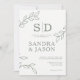 Moderne Sage Line Art Foliage Faire-part de mariage audacieux et moderne avec trois lignes de feuillage dessin et quelques monogrammes sur un arrière - plan blanc cassé. Les monogrammes de couples apparaissent également au verso de l'invitation sur un arrière - plan sage.