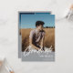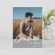 Écriture blanche moderne superposition "Graduate", faire-part d'obtention de diplôme de la haute classe de photo et invitation en gris. Lignes modèles pour le nom du diplômé, la classe de l'année et l'école. Le dos de la carte comporte 2 espaces photo supplémentaires avec des lignes de texte pour les détails de votre fête d'ouverture/remise des diplômes.