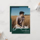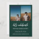Écriture blanche moderne superposition "Graduate", faire-part de remise de diplômes photo de classe supérieure et invitation en vert. Lignes modèles pour le nom du diplômé, la classe de l'année et l'école. Le dos de la carte comporte 2 espaces photo supplémentaires avec des lignes de texte pour les détails de votre fête d'ouverture/remise des diplômes.