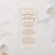 Moderne Simple Élégant Programme De Mariage De Script. Personnalisez ce programme de mariage simple et moderne pour votre mariage minimaliste ou élégant. Le design polyvalent est parfait pour n'importe quel thème mariage avec votre commande de service et calendrier, la fête de mariage et merci inclus.