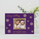 Partagez la joie de Noël avec ce carte photo familial époustouflant. Le fond violet profond est magnifiquement accentué par des flocons dorés complexes, créant un design festif et sophistiqué. Votre photo de famille chère prend le devant de la scène, encadrée par une bordure dorée, créant un point focal qui rayonne de chaleur et d'amour. Personnalisez la carte avec le nom de votre famille et le nom de chaque membre pour la rendre unique. L'intérieur de la carte présente un message de vacances chaleureux en lettres dorées élégantes, offrant des voeux chaleureux pour une saison de vacances remplie de bonheur et de plaisir. Cette carte à plat personnalisable est un moyen idéal de se connecter avec des proches pendant la plus belle période de l'année.