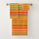 Présentant un joli ensemble de serviettes de bain avec une touche d'élégance, présentant des rayures horizontales captivantes dans une palette de jaune, orange, rouge, vert et bleu. Profitez de la simplicité vivante de ce design et augmentez votre expérience de baignade avec un éclat de couleurs vives.
