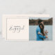 Invitation de partie fiançale moderne et élégante, avec un script élégant et une fine bordure. Vous pouvez ajouter votre propre photo à droite de cette carte d'invitation de fiançailles. La gauche de la carte a de l'espace pour ajouter vos noms et dit "sont engagés" dans un script élégant écrit dans une couleur bleu/gris poussiéreux sur un arrière - plan crème douce. Les détails de la partie fiançale sont à l'arrière, dans un texte clair et facile à lire bleu/gris poussiéreux avec "fiançailles" écrit dans une couleur pêche douce dans un script élégant, le tout sur un arrière - plan crème moderne et propre.
