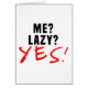 Moi? Lazy ? Oui ! texte de couleur noire, blanche et rouge. T-shirts, imprimés et cadeaux amusants et de bonne humeur. Produits et souvenirs verticaux ou orientés portrait.