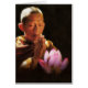 Lotus rose avec moine bouddhiste dans la prière en une image texturée douce.