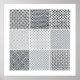 Dot patterns combine to form moire illusions.