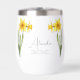 Fleur du mois de naissance Mars Vaisseau à vin Daffodil avec une illustration de fleurs de jonquilles. Sous les fleurs, le nom "Alexandra" est écrit dans une police de caractères stylée. Sous le nom, il indique "Mars - Daffodil", indiquant que le mois de naissance d'Alexandra est mars et que sa fleur de naissance est la jonquille. Il s'agit d'un cancre de vin personnalisé, probablement customisé comme un cadeau spécial pour quelqu'un né en mars.