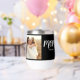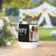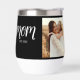 Sleek white and black thermal wine tumbler with elegant white Mom Est. script and your personalized photo. A stylish, heartfelt keepsake that keeps drinks hot or cold for busy moms on the go.