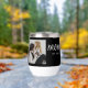 Black White Mom Established Script Black Photo Design. Replace the photo with your own of your kids and change the years to the years you became a mom. Use the edit tool if you want a second photo added instead of the one photo two times.