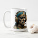 Ce mug saisissant présente un design de momie d'une beauté hantante enveloppé d'hiéroglyphes et d'accents dorés — un hommage aux gardiens éternels du Nil.