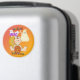 My 1st Halloween Round Magnet présente un arrière - plan orange dégradé (personnalisable), un bébé de dessin animé devant une lune jaune croissant portant une couche et un arc-en-cheveux rose tenant un jack-o-lanterne. Devant la lune se trouvent deux mignons fantômes souriants tenant le mot BOO qui est violet vif. À l'arrière du bébé est une maman en forme de bonbon de maïs avec de mignons yeux de googly. Colorful Styliszed est Mon premier Halloween. Un cadeau parfait pour Halloween ! Pour customiser la couleur de l'arrière - plan - Supprimer l'image de l'arrière - plan - Cliquez sur le bouton Bleu "Customiser", - Cliquez sur le "X" à côté de l'image de l'arrière - plan, puis sur "Modifier" puis sur "Arrière - plan", choisissez votre couleur et cliquez sur "Terminé".