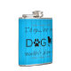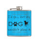 Un flacon parfait pour ceux qui préfèrent la compagnie des chiens et le confort de la maison! Cette conception de flacon comporte un texte qui dit "Je partirais...mais mon chien ne l'autorisait pas." avec un empreinte de patte et une silhouette de chien ornée contre un arrière - plan en bois bleu. Autres cadeaux disponibles avec ce design aussi.