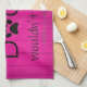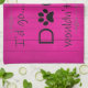 La serviette de cuisine parfaite pour ceux qui préfèrent la compagnie des chiens et le confort de la maison. La serviette de cuisine My Dog Would't Allow It Kitchen Towel comporte un texte qui dit "J'irais...mais mon chien ne l'autorisait pas." avec un empreinte de patte et une silhouette de chien ornée contre un arrière - plan en bois magenta. Autres cadeaux disponibles avec ce design aussi.