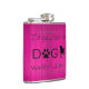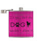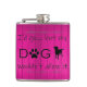 Un flacon parfait pour ceux qui préfèrent la compagnie des chiens et le confort de la maison! Cette conception de flacon comporte un texte qui dit "Je partirais...mais mon chien ne l'autorisait pas." avec un empreinte de patte et une silhouette de chien ornée contre un arrière - plan en bois magenta. Autres cadeaux disponibles avec ce design aussi.