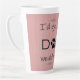 Parfait pour ceux qui aiment les lattes, les chiens et le confort de la maison. Le My Dog ne voulait pas l'autoriser Latte Mug design dispose d'un texte qui dit "Je partirais...mais mon chien ne l'autorisait pas." avec un empreinte de patte et une silhouette de chien ornée contre un arrière - plan en bois rose. Autres cadeaux disponibles avec ce design aussi.
