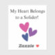 "Mon coeur appartient à un soldat" autocollant pour votre ordinateur portable, votre journal ou n'importe où d'autre que vous voulez le mettre ! Que vous soyez un soldat qui vient juste de partir pour l'entraînement de base ou que vous soyez un conjoint militaire depuis de nombreuses années, votre coeur appartient à un soldat, et maintenant voici un autocollant à suivre.