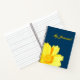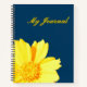 Un Journal. Couvrez l'arrière - plan bleu foncé avec la grande fleur jaune.