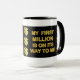 Tasse avec une affirmation positive : "MILLION DE TASSE du DOLLAR - MON MILLION PREMIER EST SUR SON CHEMIN À MOI" dans l'écriture d'or avec les symboles dollar d'or sur un arrière - plan noir. Utilisez cette tasse chaque jour pour reprogrammer votre subconscient avec une attitude de l'expectative afin de manifester le succès et la richesse finaux. Son aussi le cadeau parfait pour des amis, famille ou collègues comme ils s'embarquent sur un projet spécial dans le but de devenir financièrement réussi.