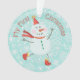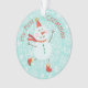 Cet ornement de Noël présente un joli modèle fantaisiste de bonhomme de neige et de flocon de neige avec une fausse parties scintillant d'or. Personnalisez le dos avec le nom, l'année et la photo. Ce modèle fonctionne le mieux avec les photos au format paysage avec le bébé au centre.