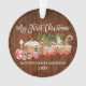 Script moderne de brosse Mon premier ornement de Noël comprend Watercolor Gingerbread Train avec bonbons, biscuits et pins. Rustic Country Wood Print.