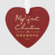 Un cadeau de Noël significatif pour un nouveau grand-père. L'ornement présente "My First Christmas as" (Mon premier Noël comme) dans une police de faux or magnifiquement lettrée à la main et l'autre texte dans la typographie moderne. Personnalisez l'ornement en remplaçant l'exemple de texte et de photo à l'arrière.
