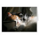 Calico chat endormi pendu contre un livre dans un rayon de soleil du carte photo de fenêtre