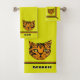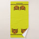 Cette serviette épaisse et veloutée présente un mignon tigre en forme de caricature sur un arrière - plan à puces (jaune-vert) brillant avec des bordures noires et orangées en alternance au-dessus d'une large bande de puces au fond. La taille de la baignoire est prête à être personnalisée avec votre (ou votre enfant) nom, la serviette de bain a de l'espace pour un monogramme, le linge de toilette a une initiale.