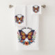 Ajoutez une touche de beauté naturelle à votre salle de bain avec ce somptueux ensemble de serviettes de bain, comprenant une serviette de bain, une serviette et un linge de toilette. Chaque pièce présente le design complexe d'un papillon monarque dans des tons vifs d'orange et de noir, entouré d'un agencement floral animé de tons rouges, orange, bleus et verts. Ce motif délicat et artistique apporte le charme enchanteur de la nature dans votre maison, ce qui en fait un choix parfait pour un usage quotidien et comme un cadeau réfléchi.