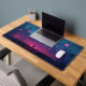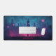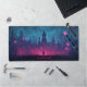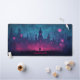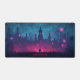 Une silhouette d'enfant qui regarde une ville d'imaginaire brillante sous un ciel étoilé magique rempli d'orbes brillantes. C'est un excellent design pour les amateurs de tapis de bureau colorés et astucieux.
