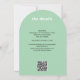 Cette belle carte de faire-part de mariage moderne présente du lettrage blanc et du lettrage noir sur un arrière - plan vert menthe et dispose également d'un code QR. Avant de commander, veuillez utiliser le modèle de personnalisation en ligne pour entrer l'URL de votre site Web mariage existant pour le code QR à générer automatiquement; veuillez également personnaliser le libellé à l'avant et à l'arrière de la carte. Vous pouvez inclure des informations supplémentaires dans les détails au verso si vous le souhaitez, comme les détails de transport et d'hébergement. Si vous souhaitez modifier la taille ou la mise en page de la police, faites défiler le modèle de personnalisation vers le bas et cliquez sur l'option "Modifier en utilisant l'outil de conception".