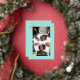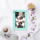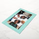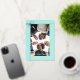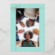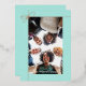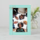 Envoyez vos voeux de vacances avec cette enveloppement cadeau minimaliste vert menthe inspirée, carte de voeux photo. L'arc à cordes et "Joyeux Noël" ou le texte de voeux de fête personnalisé est en papier journal. L'option de changer la feuille d'or rose en argent ou en or est disponible. Le dos de la carte est un arrière - plan blanc et vert menthe solide.