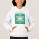 Monogram Hoodie - 20XX "Joy! Love! Peace!" and white Snowflake ornament on green Pattern. Merry Christmas and Happy New Year! XMAS Hoodie decorated with Christmas magic symbols, Winter Holiday gifts. Original trendy graphic design. Clothing & Shoes > Kids > Girls > Clothing > Hoodies & Sweatshirts. Winter Holiday Decoration. Hoodie Design with text template. Personalize them by adding name. Two sides graphic decoration.